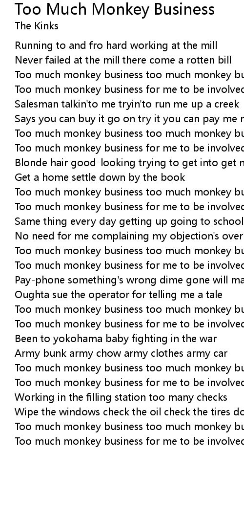 Too much monkey business too much monkey business |