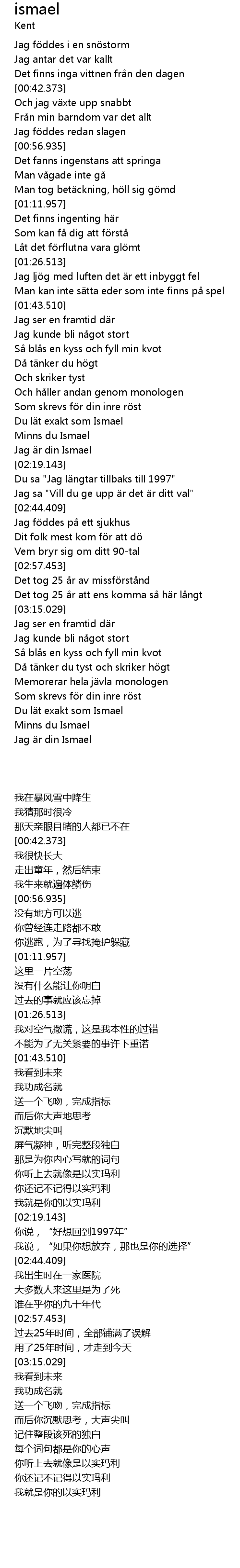 | [03:46.658] | Jag r din Ismael |