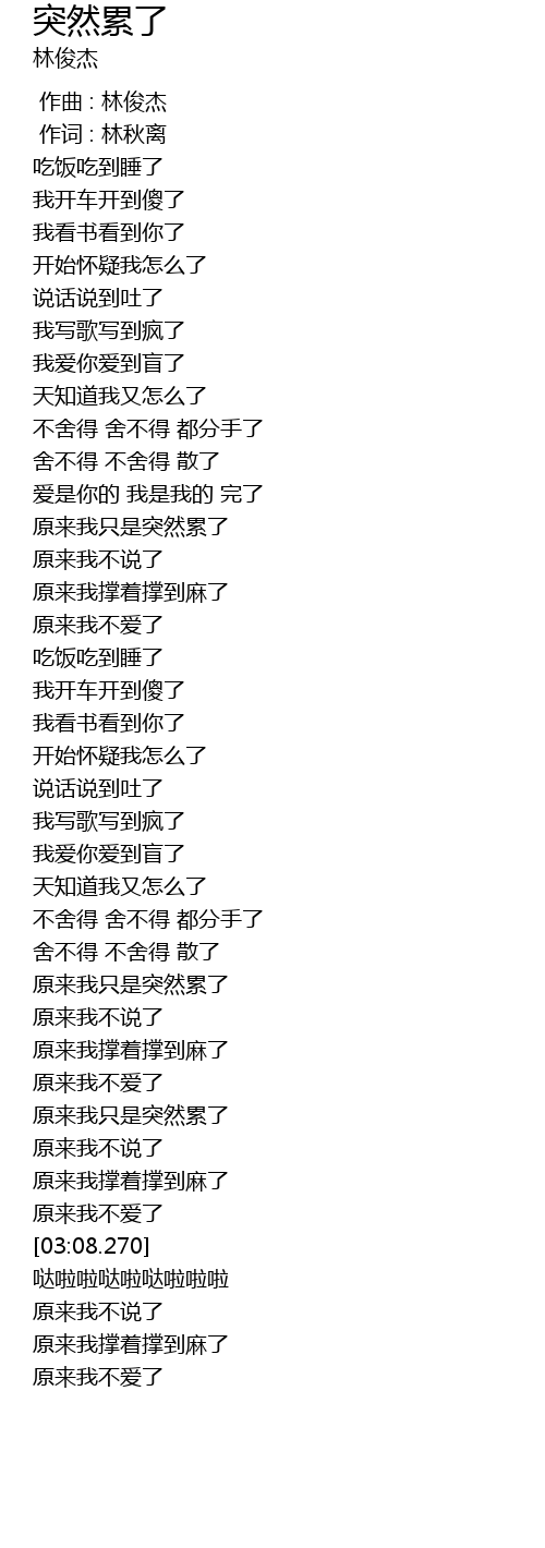 | [02:42.290] | yuan lai wo zhi shi tu ran lei le |