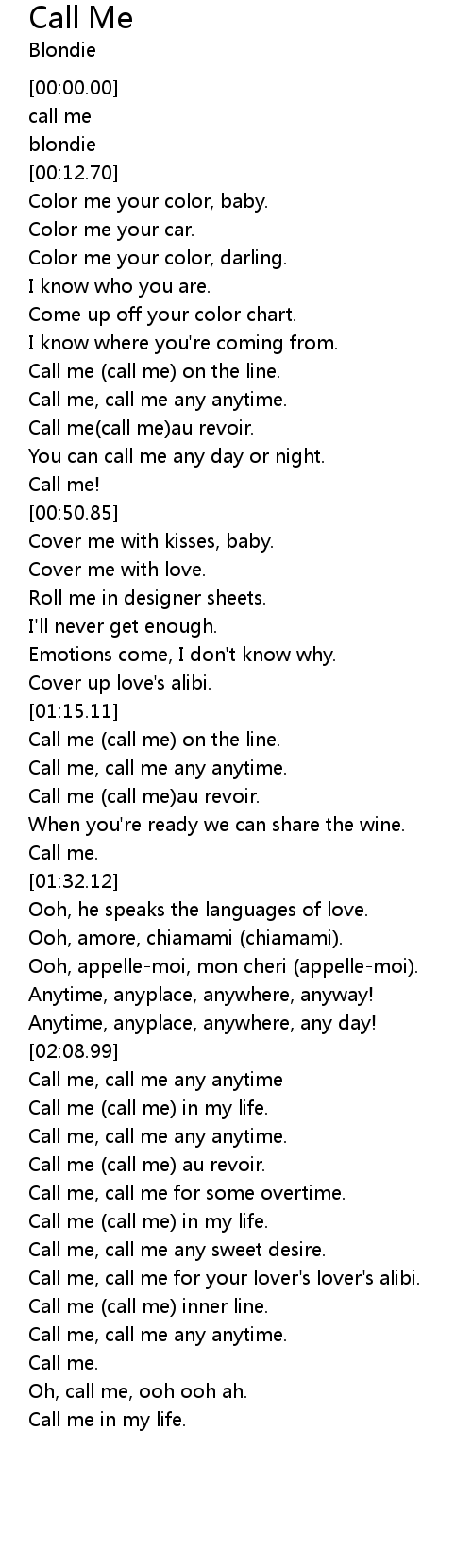 Ooh, appelle-moi, mon cheri (appelle-moi). |