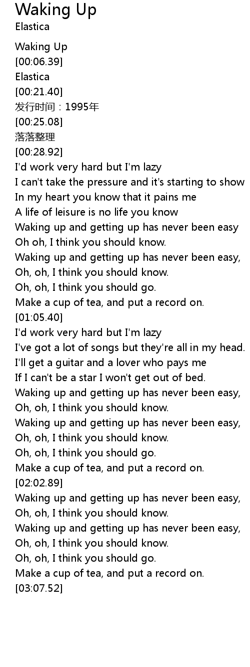 | [00:51.38] | Waking up and getting up has never been easy, |