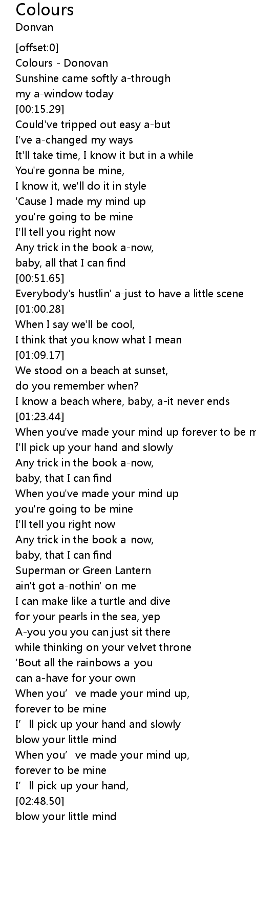 | [00:01.12] | Colours - Donovan |
