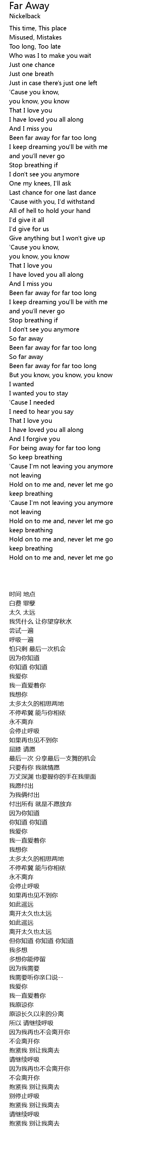 Been far away for far too long |