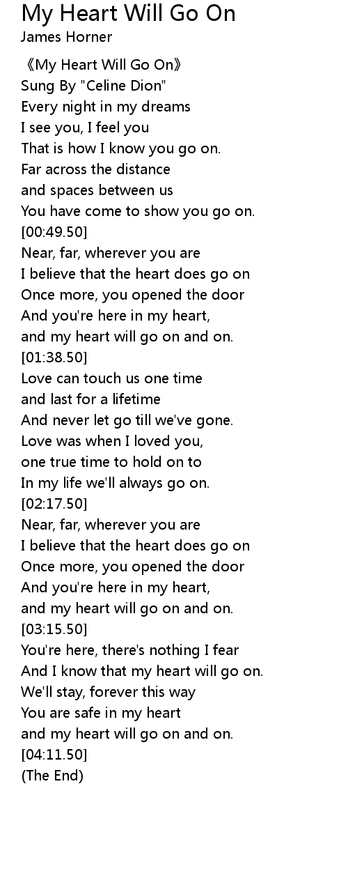 | [02:51.50] | and my heart will go on and on. |