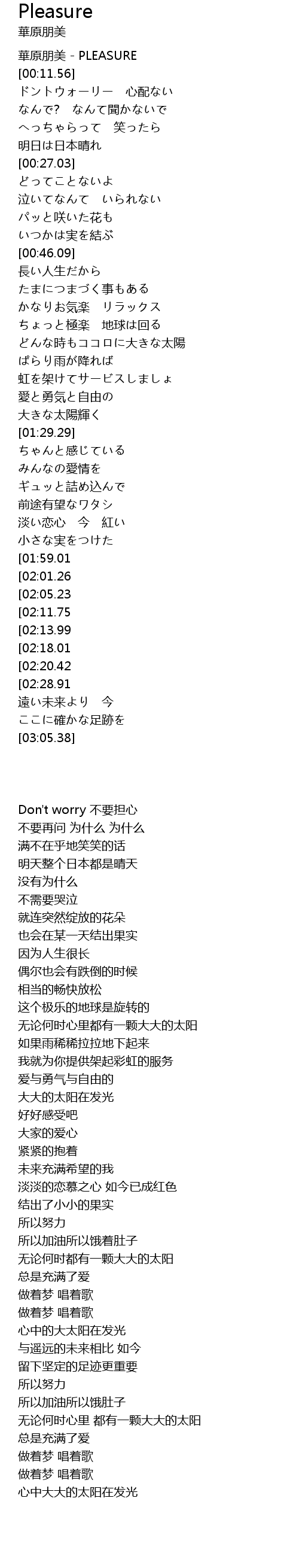 | [00:00.00] | hua yuan peng mei PLEASURE |