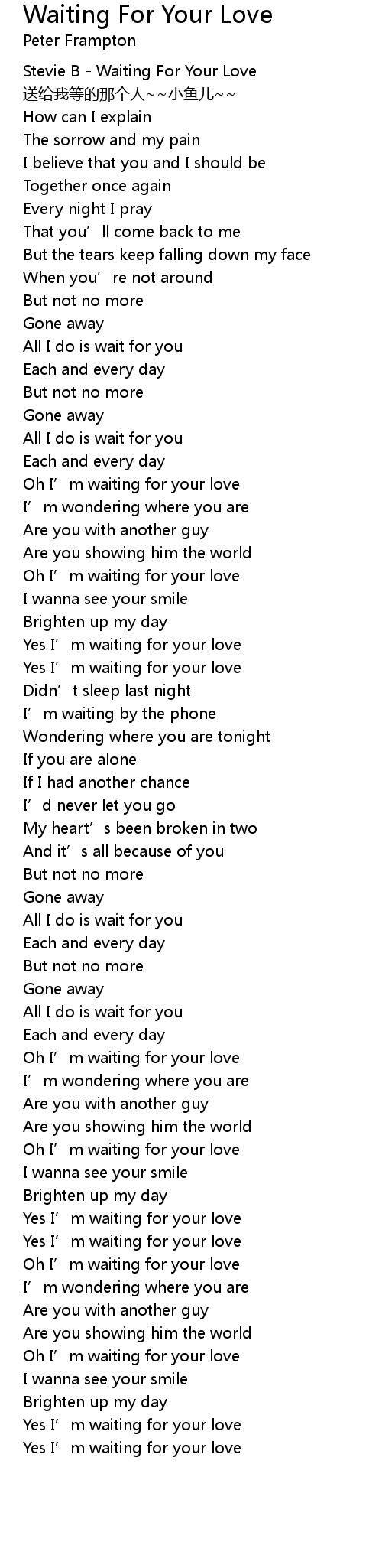 | [00:01.83] | Stevie B Waiting For Your Love |