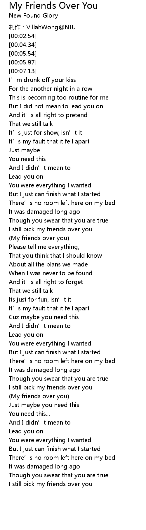 | [01:06.96] | My friends over you |