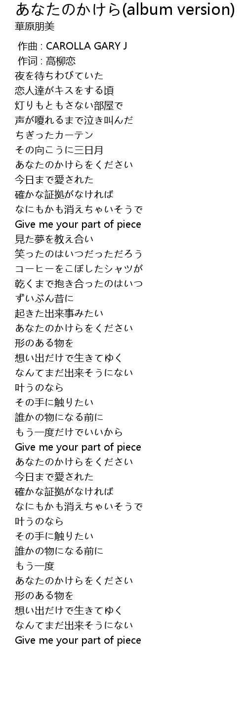 | [00:36.56] | 声が嗄れるまで泣き叫んだ |