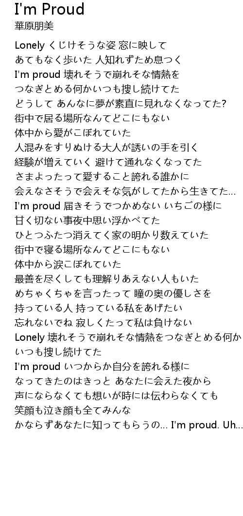 | I'm proud 壊れそうで崩れそな情熱を | |
