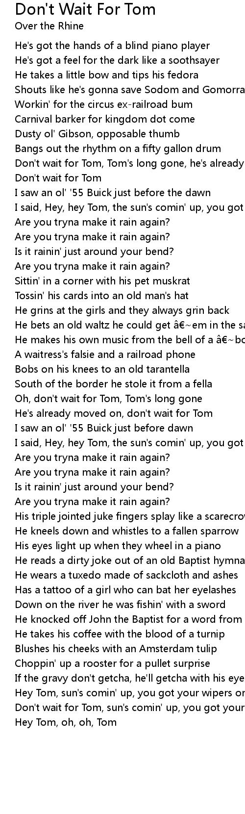 | Oh, don' t wait for Tom, Tom' s long gone | |
