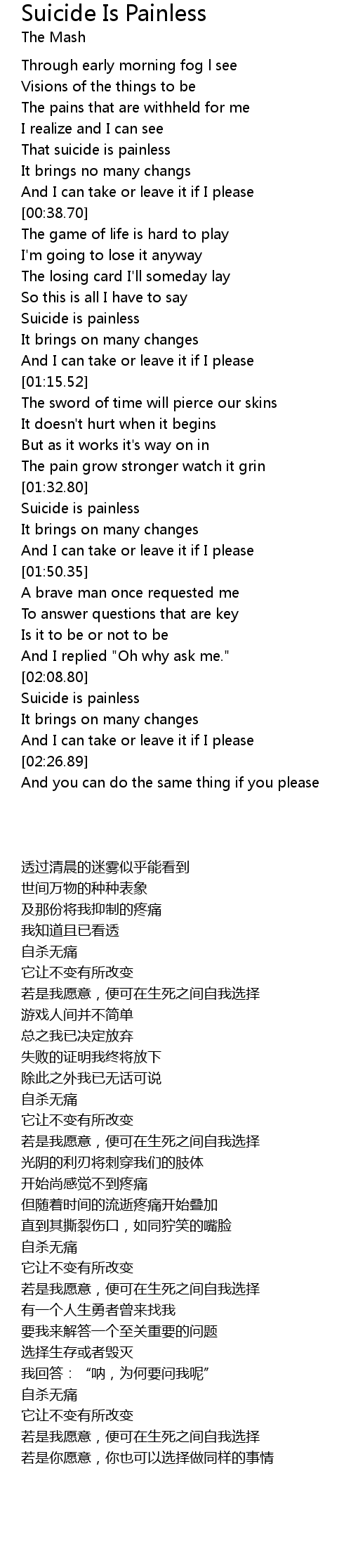 That suicide is painless |