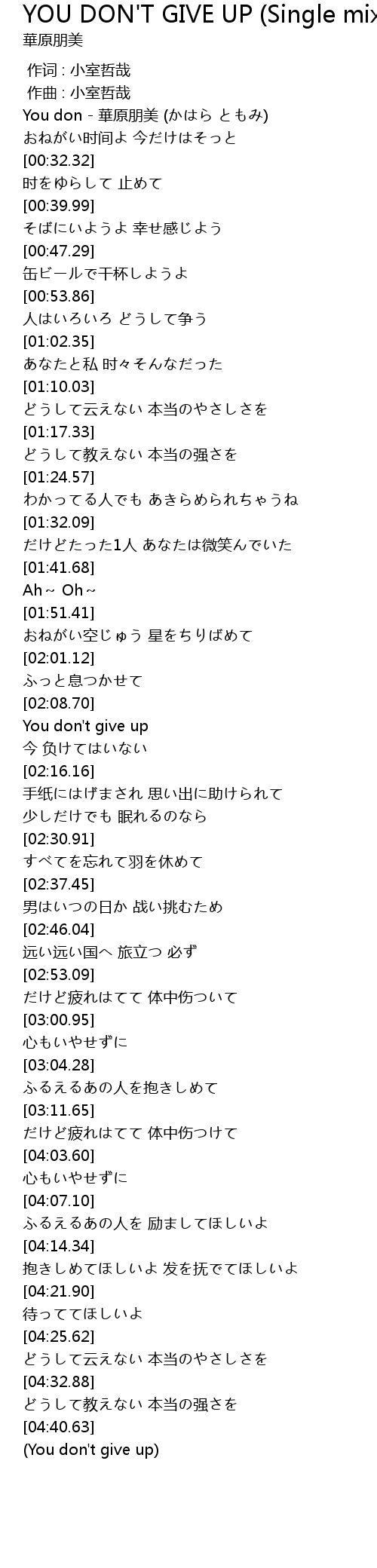 | [04:43.33] | (You don't give up) |