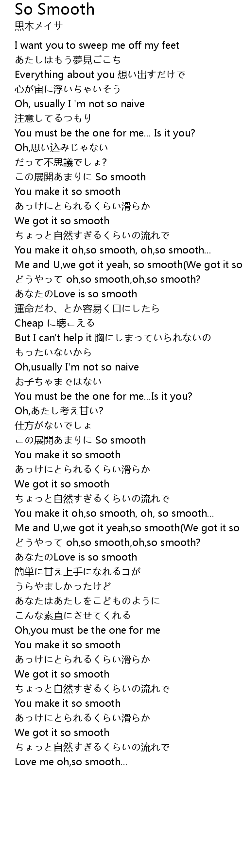 | Me and U, we got it yeah, so smooth We got it so smooth | |