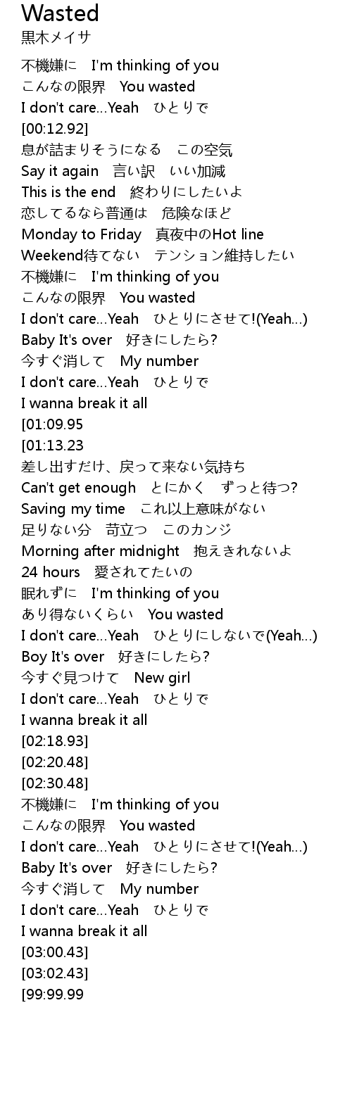 | [01:20.07][01:13.23] | Ai-oh You wasted wasted |