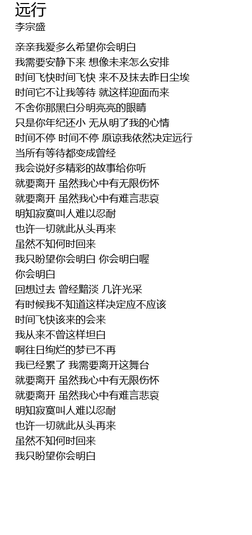 | [01:20] | 时间不停 时间不停 原谅我依然决定远行 |