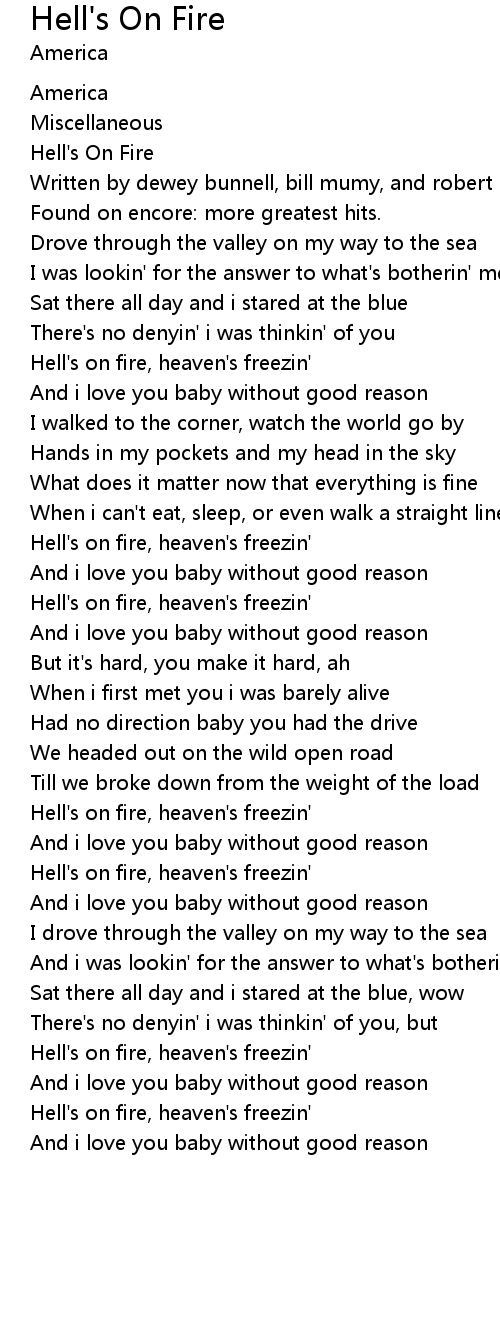 | Hell' s on fire, heaven' s freezin' | |