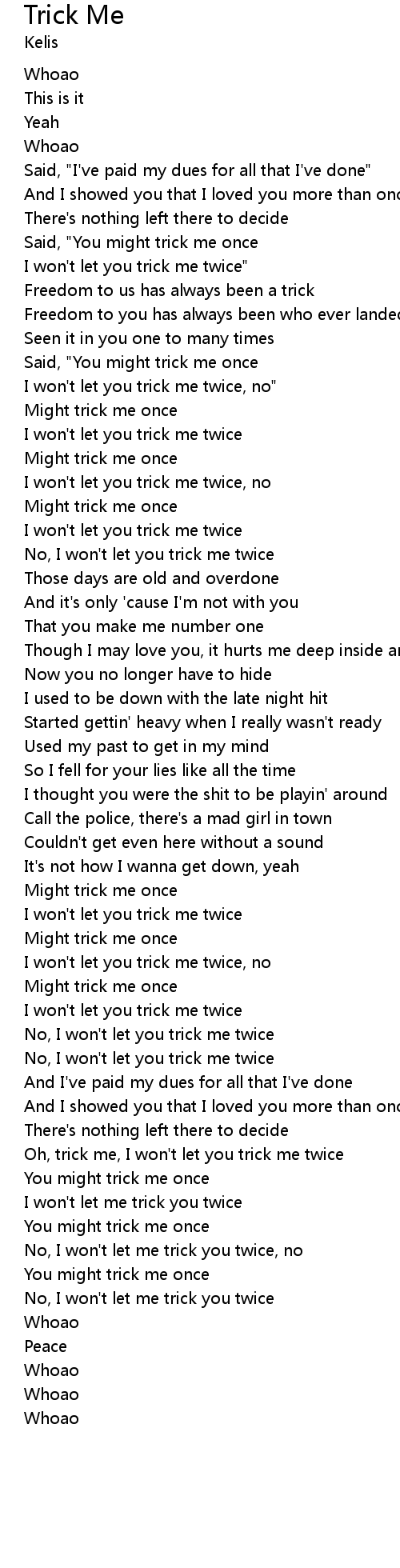 No, I won't let me trick you twice |
