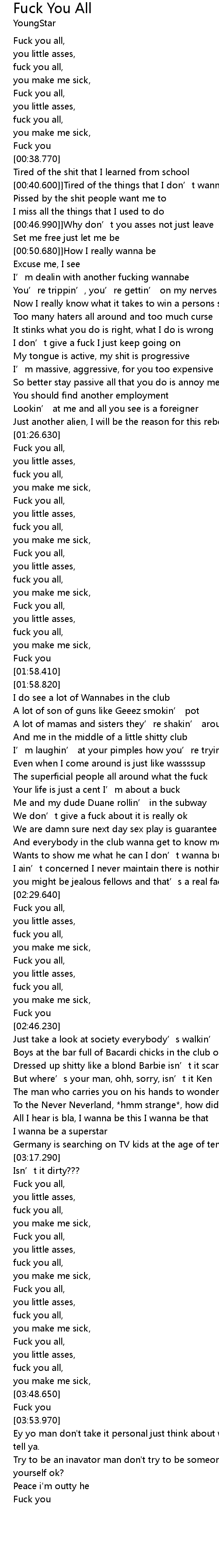 | [00:29.480] | Fuck you all, |