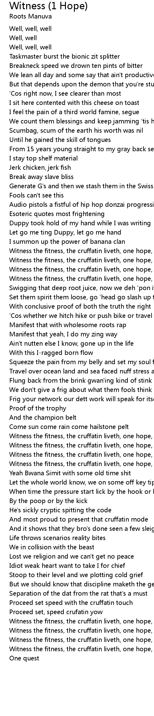 Witness the fitness, the cruffatin liveth, one hope, one quest |