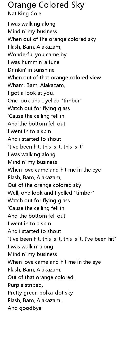 When out of the orange colored sky |