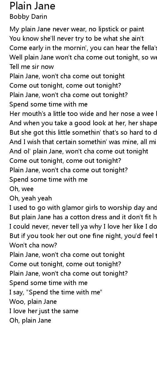 Well plain Jane won't cha come out tonight, so we can have a ball |
