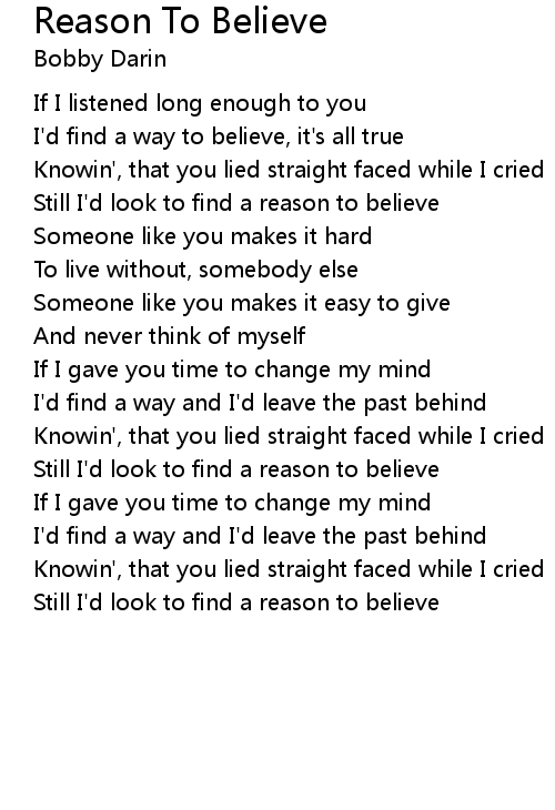 Still I'd look to find a reason to believe |