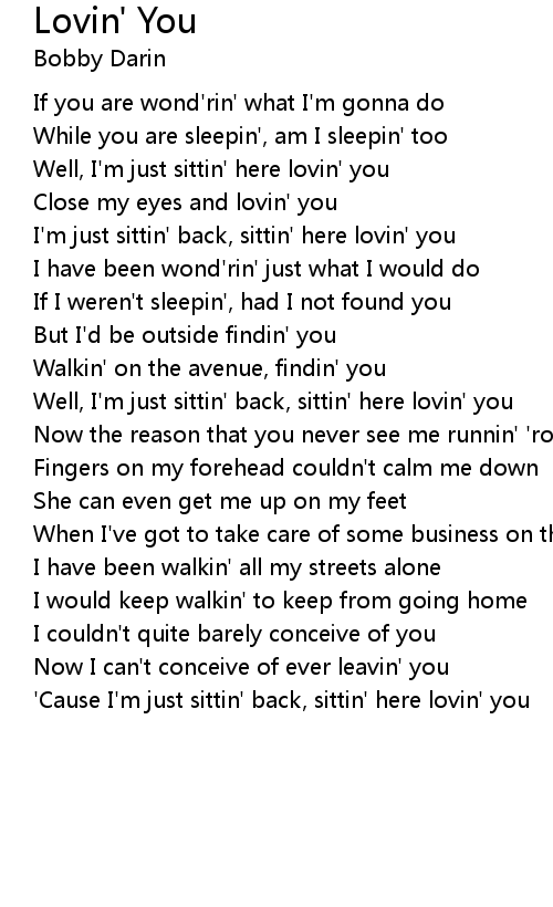 Well, I'm just sittin' back, sittin' here lovin' you |