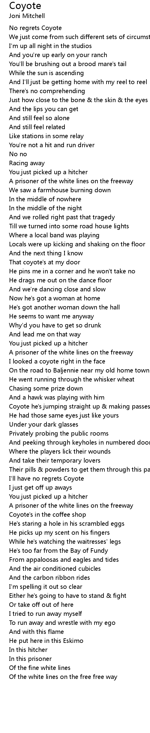 I'll have no regrets Coyote |