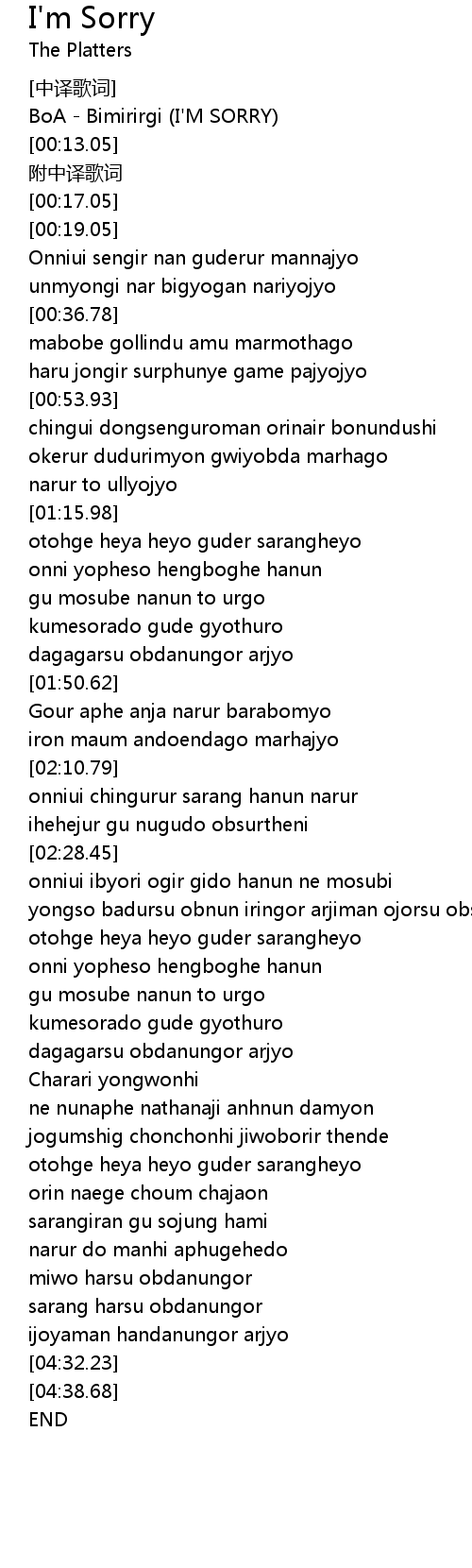 | [00:00.00] | BoA Bimirirgi I' M SORRY |