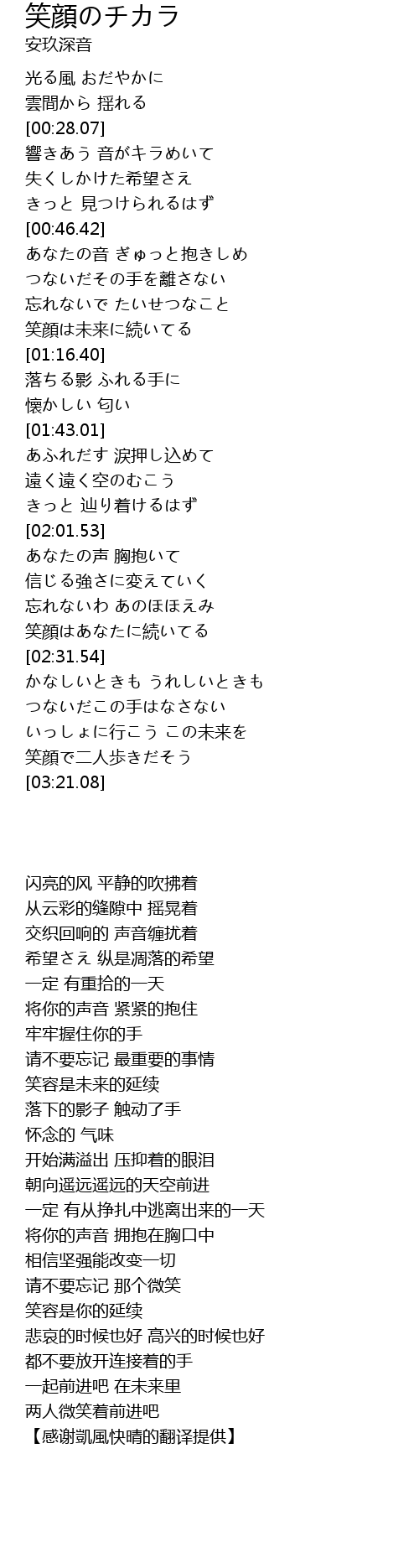 | [02:25.15] | 笑顔はあなたに続いてる |