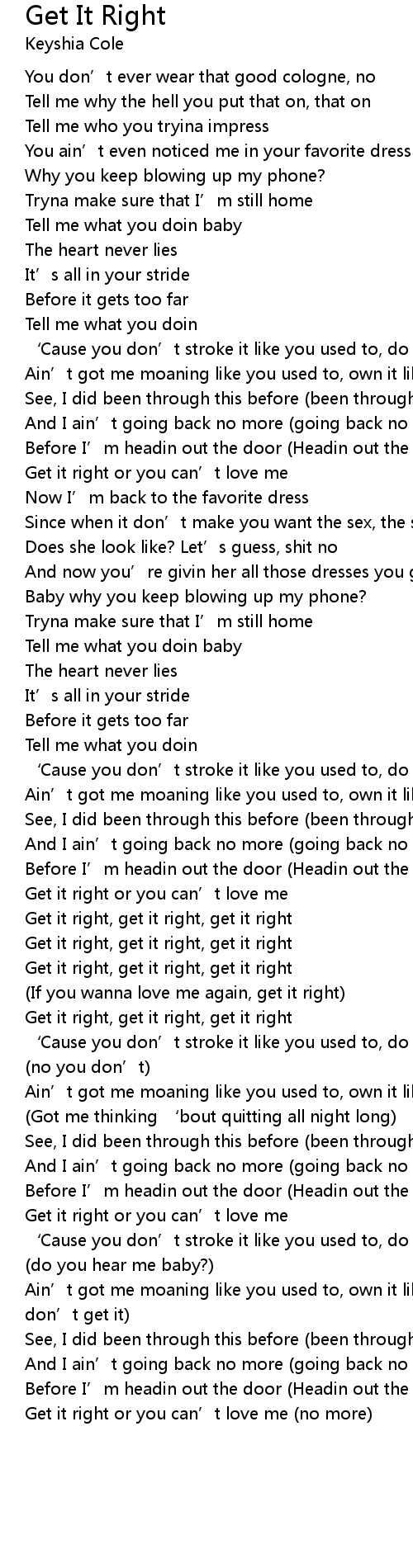 | ‘Cause you don’t stroke it like you used to, do it like you used to do it (do you hear me baby?) | |