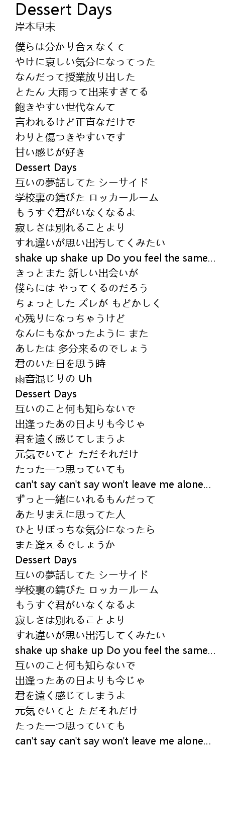 | Song | Dessert Days |