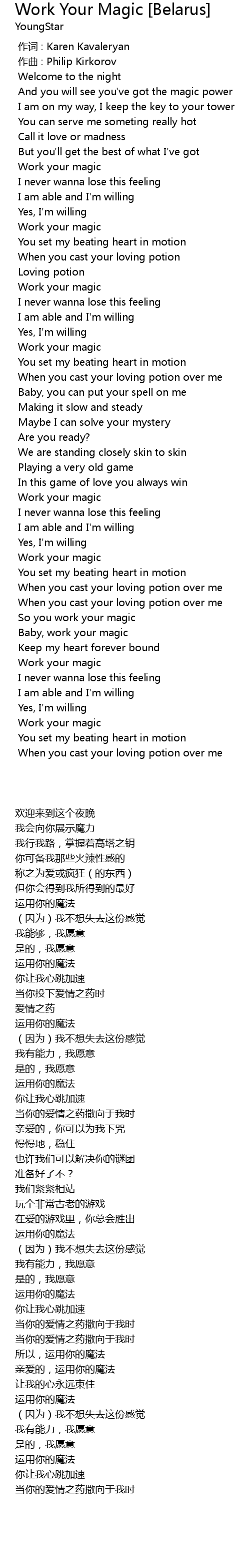 | Song | Work Your Magic [Belarus] |