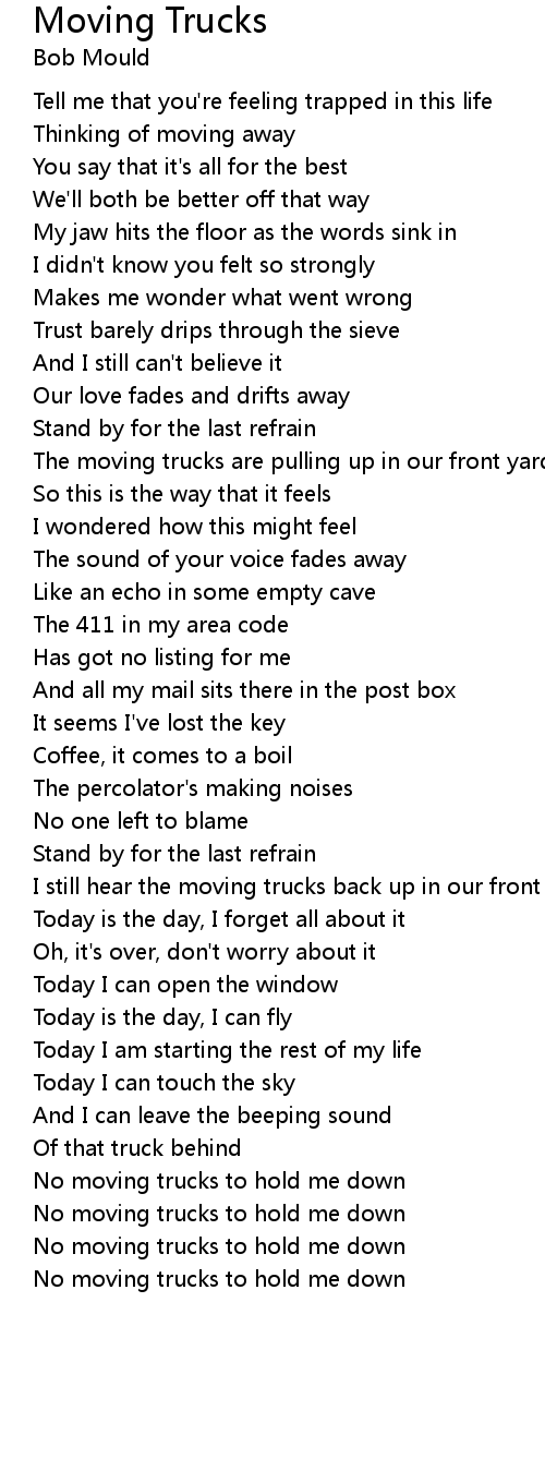 No moving trucks to hold me down |