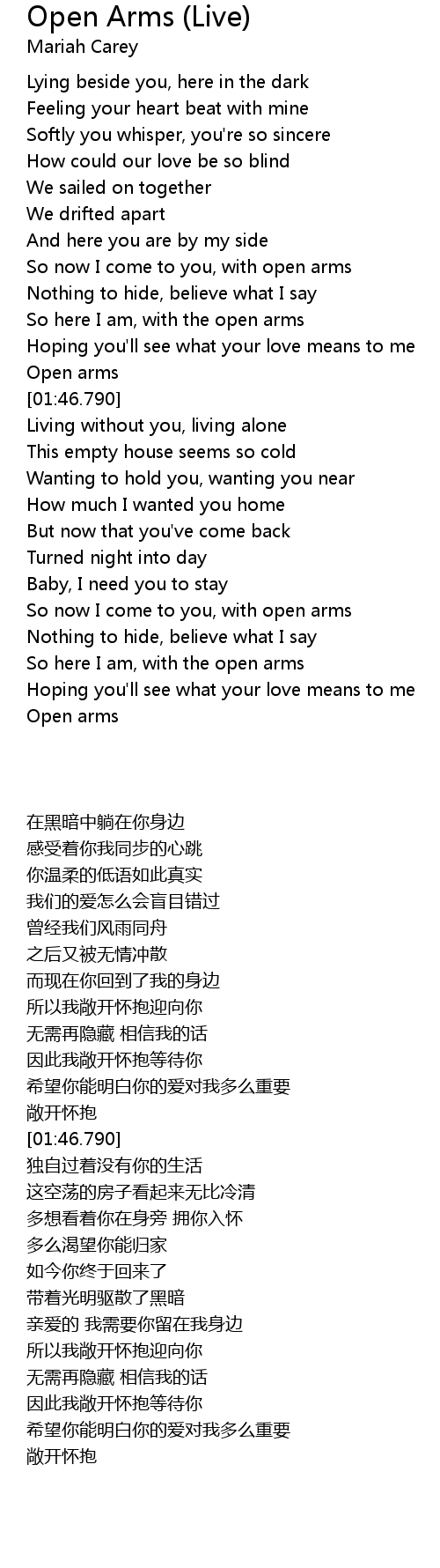 So now I come to you, with open arms |