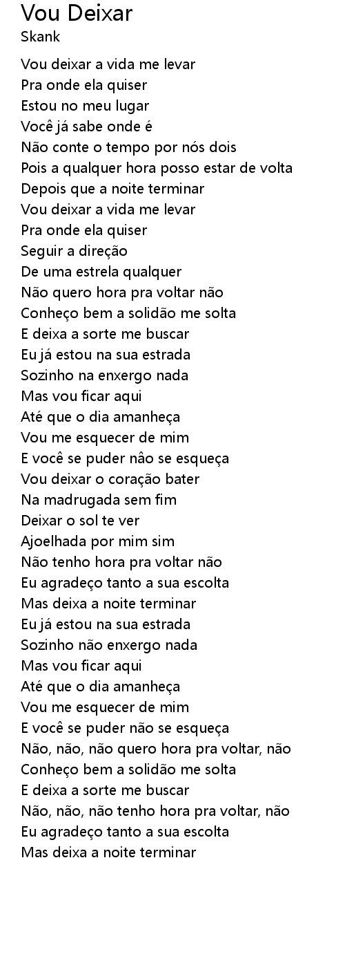 | Não tenho hora pra voltar não | |