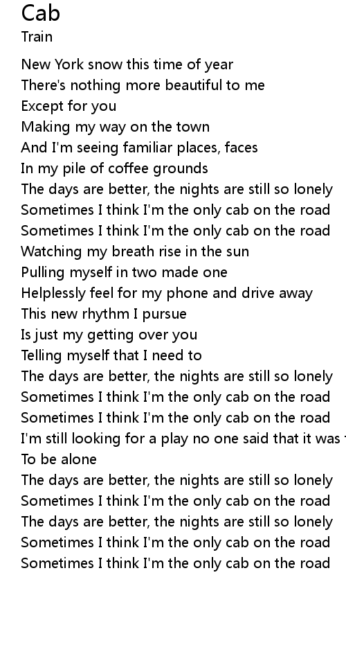 Sometimes I think I'm the only cab on the road |
