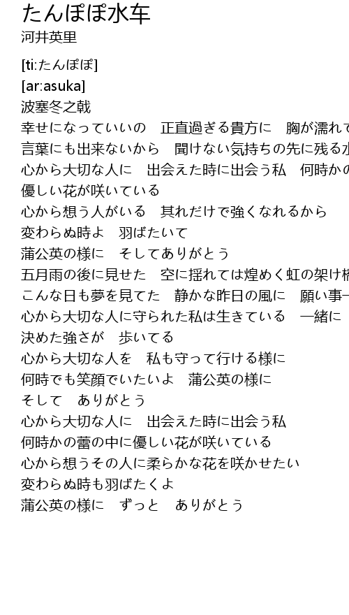 | [04:13.544] | 蒲公英の様に ずっと ありがとう |