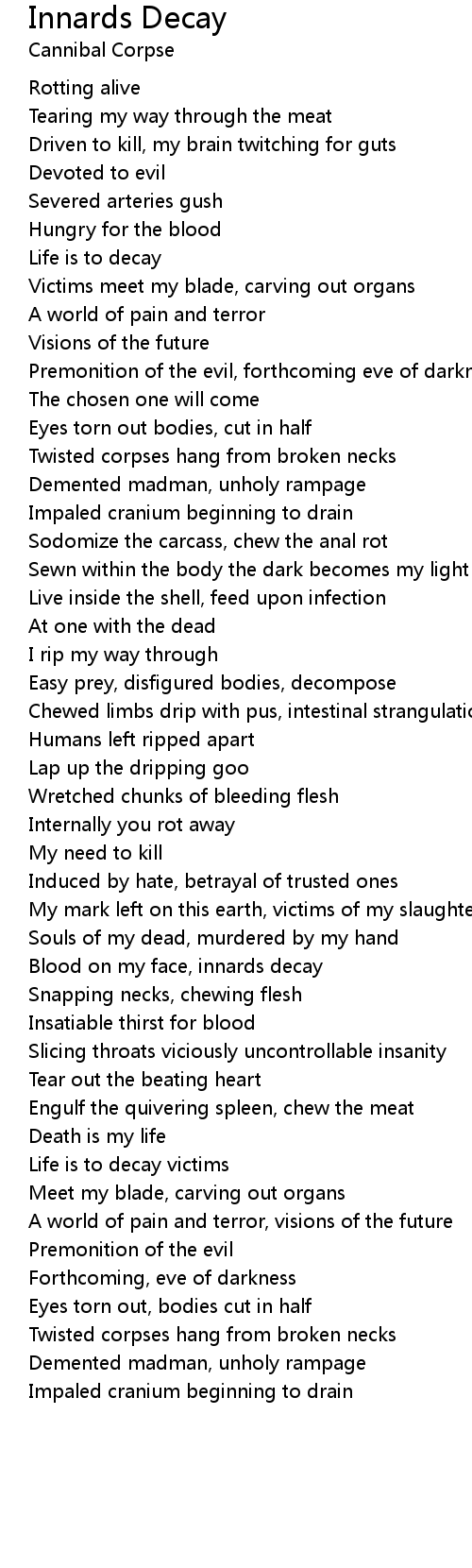 Blood on my face, innards decay |