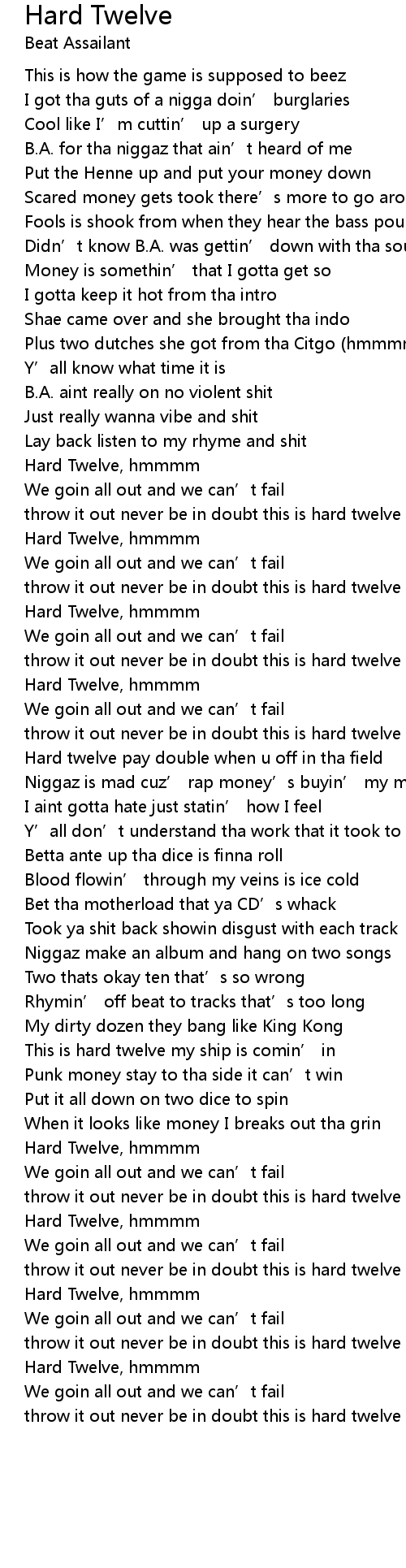 | throw it out never be in doubt this is hard twelve | |