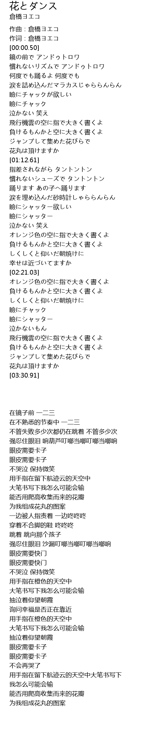 | [00:20.41] | 何度でも踊るよ 何度でも |