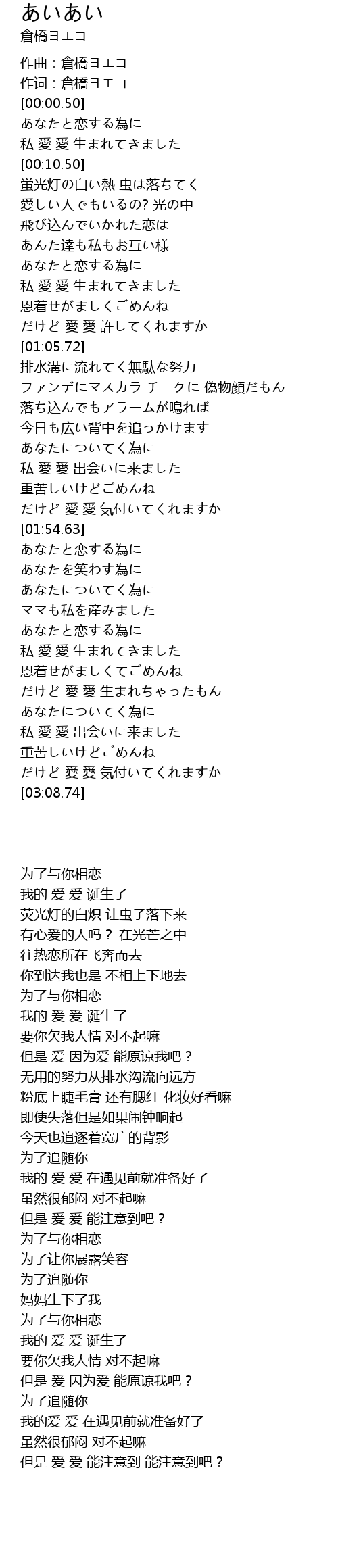 | [00:03.71] | 私 愛 愛 生まれてきました |