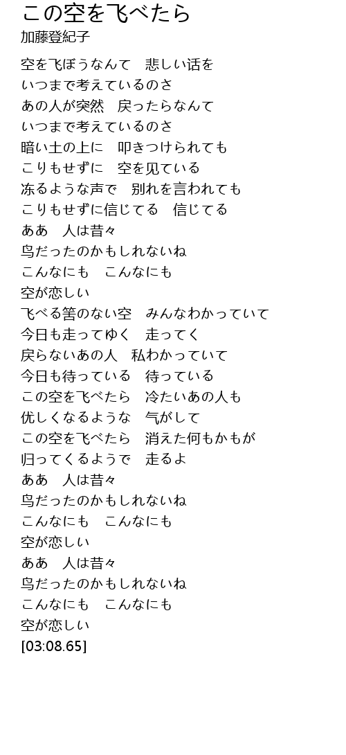 この空を飞べたら 冷たいあの人も |