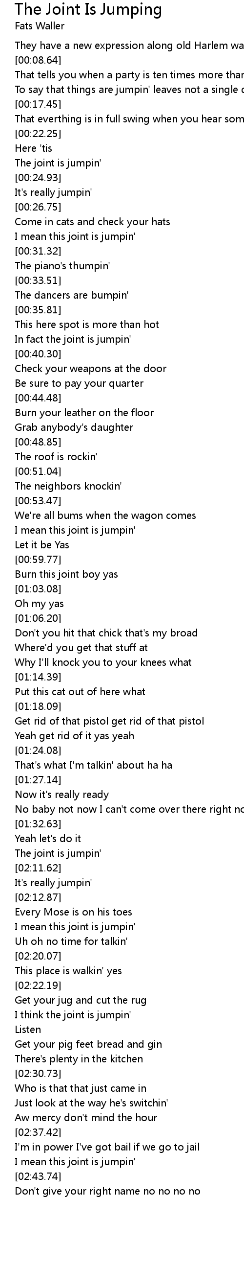 In fact the joint is jumpin' |