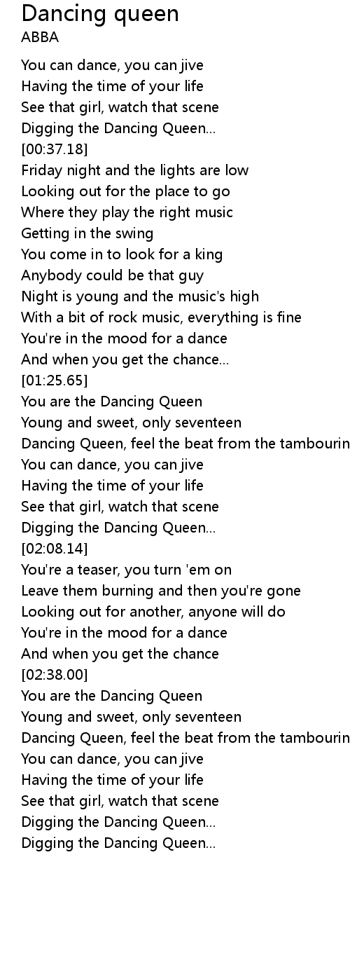 Dancing Queen, feel the beat from the tambourine |