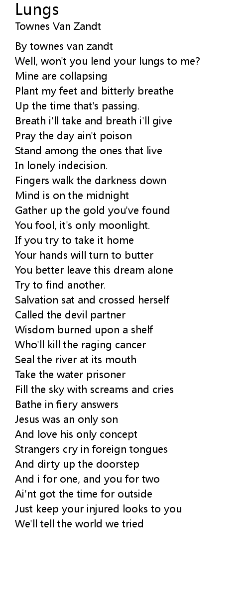 Well, won't you lend your lungs to me? |