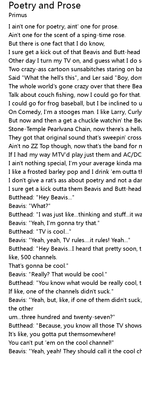 | [01:11] | But now and then a get a chuckle watchin' the Beavis and Butt-head show. |