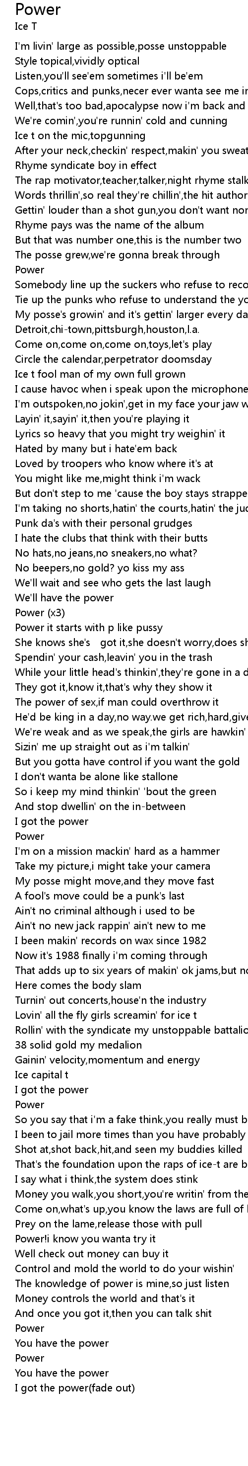 | Cops,critics and punks,necer ever wanta see me in power | |