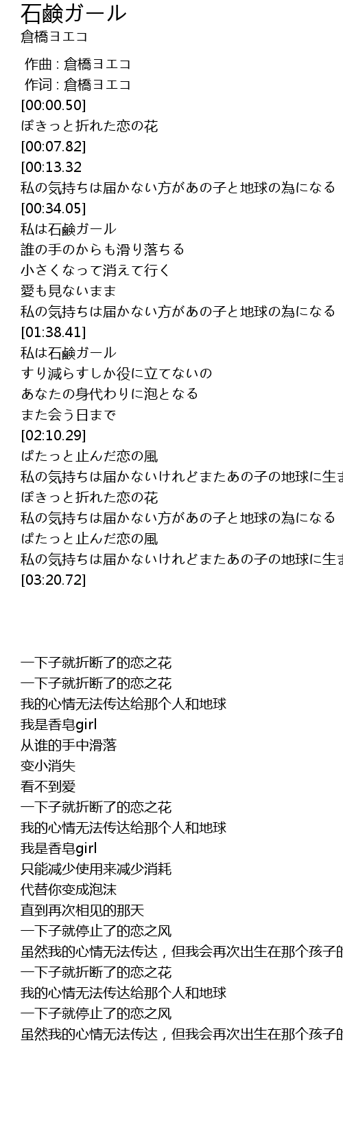 | [03:02.71] | 私の気持ちは届かないけれどまたあの子の地球に生まれます |