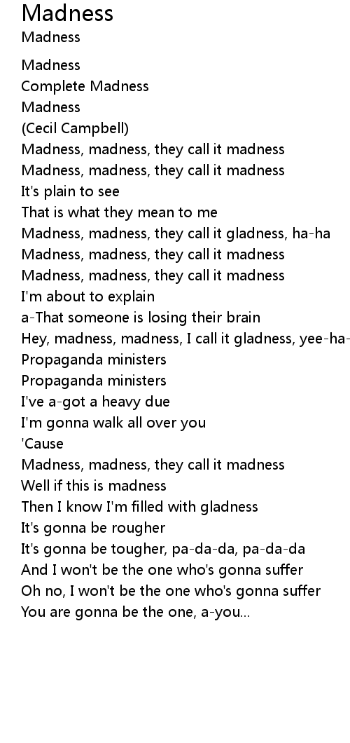 Hey, madness, madness, I call it gladness, yee-ha-ha-ha